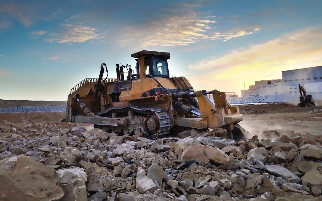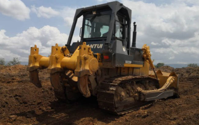 SD22D沙漠版推土机在北非某工地施工