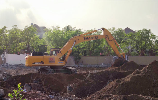 山推挖掘机机群助力拆迁施工