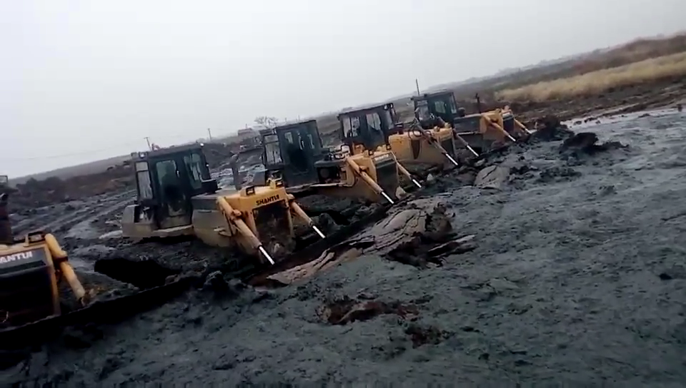 技巧五:在泥泞松软的工况推土时,推土机容易陷车,所以每铲推土量不可过大,行驶途中尽量避免停歇,换挡,转向和制动 蜜桃影视,必要时用2挡推土,如果遇到履带打滑的情况,可适当提升铲刀减少推土量,若推土机仍不能前进,则可挂倒挡后退。